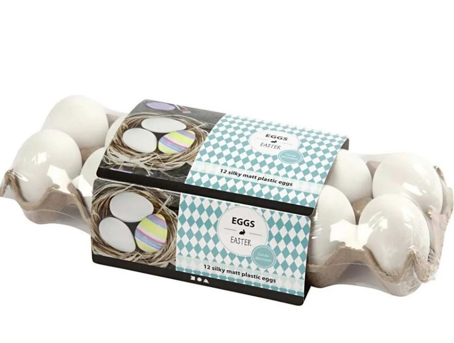 Tõetruud plastmassist munad, mida saab kaunistada lihavõttepühadeks.