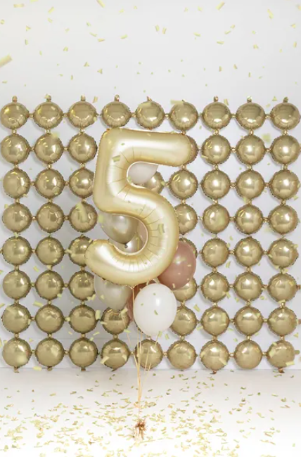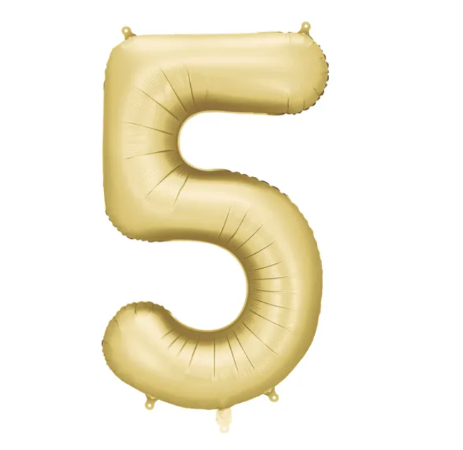 Folinis balionas "5", auksinis (86 cm), auksinis matinis