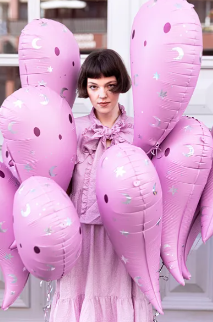 Õhupallid on hädavajalikud isegi kõige õudsemale peole! Lillakas kummist kummituskujuline õhupall silmade ja suuga hirmutab igaüht!