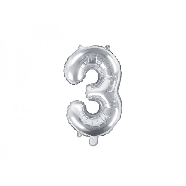 Hõbedast värvi fooliumist õhupall number „3“ on täiuslik aksessuaar teie pidustusele mis äratab kõigi tähelepanu.