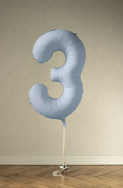 Fooliumõhupall „3“, pastelne helesinine (85 cm)