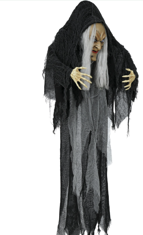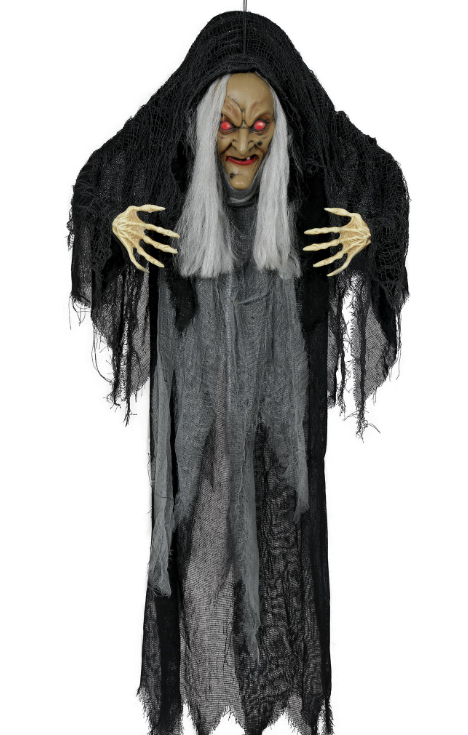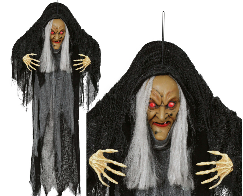 Interaktiivne dekoratsioon „Küürakas nõid“ – sisselülitamisel liigub, silmad helendavad punaselt ja tekitab õõvastavaid helisid.
