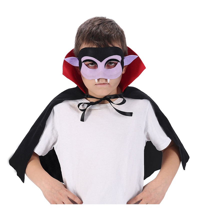 Karnevalikomplekt Vampiir – must mantel punase voodriga ja mugav vampiirimask kihvadega loovad mängulise, kuid samas hirmutava välimuse.