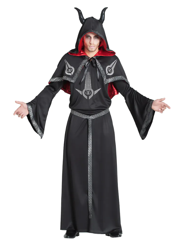 Deemonikostüüm – pikk tuunika hallide detailidega; hall vöö; hall keep, mis on kaunistatud mustade sarvedega ning mille sisekülg on punasest kangast.