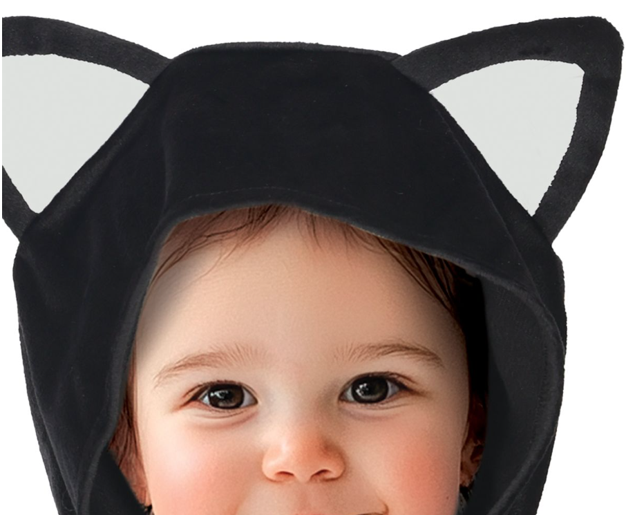 Laste keep "Kassike", valmistatud väga pehmest materjalist õrna karvkattega, kapuutsiga, millel on kõrvakesed, ning sabaga.