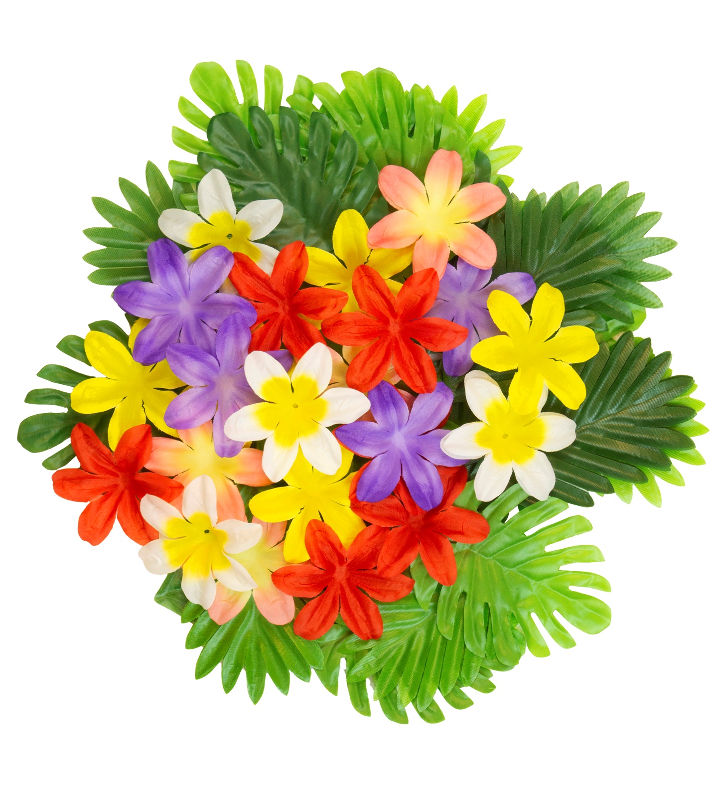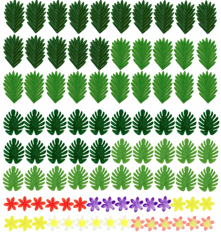 Komplekt koosneb erineva kuju ja värviga troopilistest lehtedest ja lilledest, mida saab laiali puistata pidulikule lauale, kasutada fotoseina või muude pidulike kohtade kaunistamiseks. Erksad värvid ja troopilised motiivid annavad dekoratsioonile eksootilist võlu.