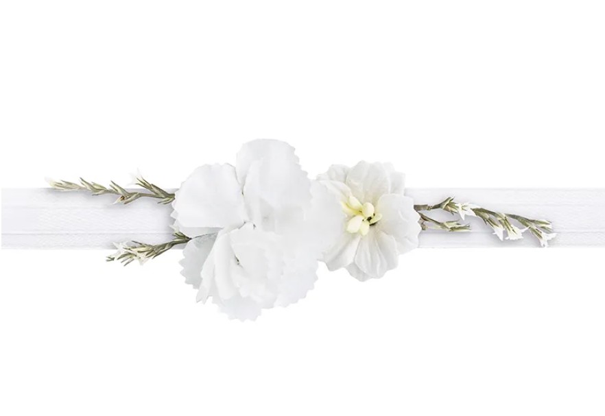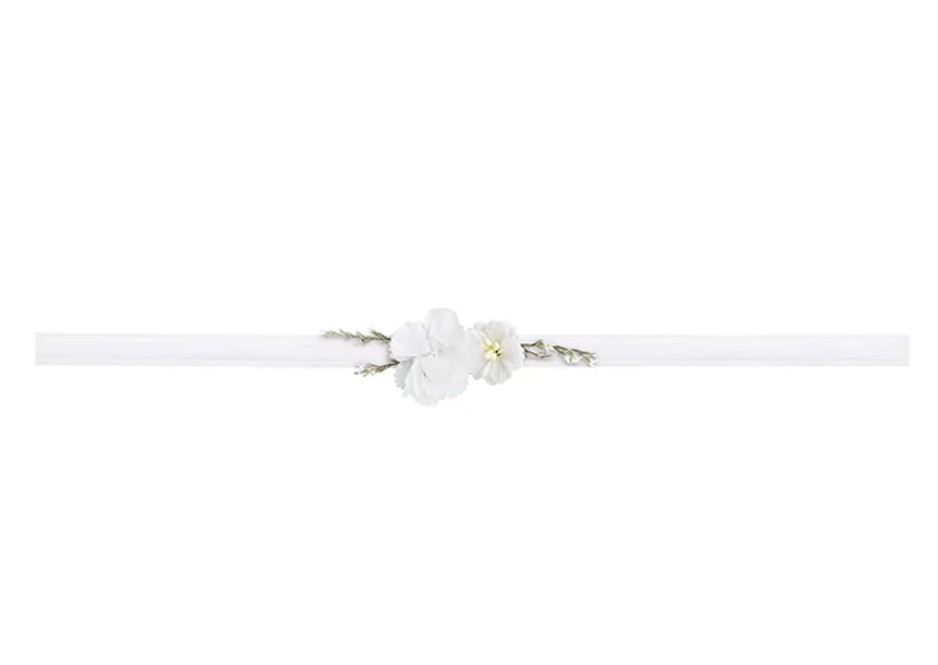 Dekoratiivne lillepärg-käevõru valge lillega sobib suurepäraselt nii tulevastele pruutidele kui ka pulmafotosessioonideks ja lilletemaatilisteks pidudeks.