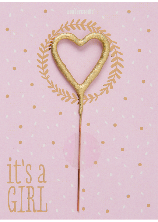Säraküünal-süda It's a Girl kaardiga. Siseküljele saate kirjutada oma teksti.