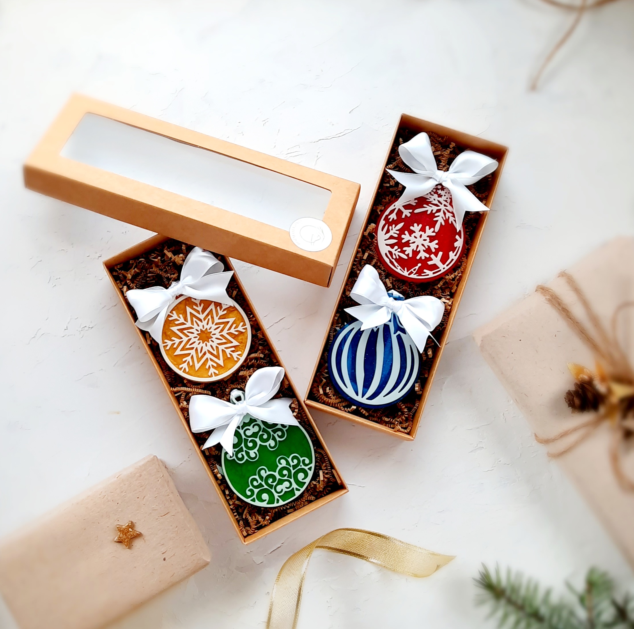 Seep on pakendatud minimalistlikku pruunist kartongist karpi aknaga ning seotud jõululindiga.