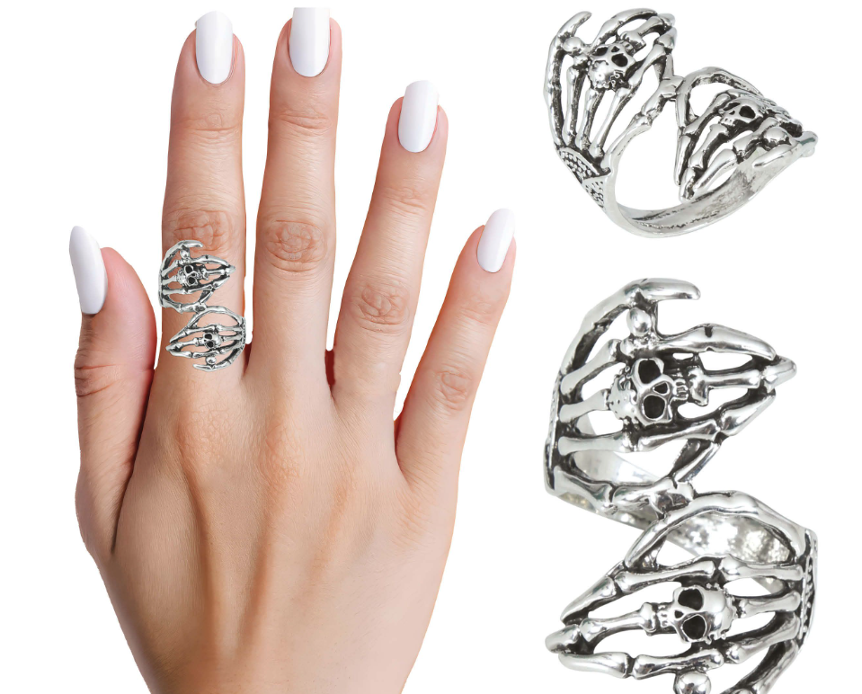 Elegantne sõrmus luukere kätega, mis täiendab suurepäraselt teie Halloween'i peo välimust.