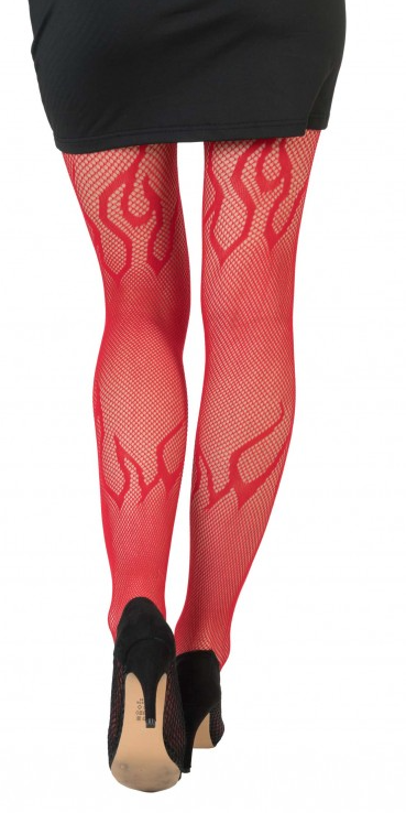 Punased võrksukkpüksid leegimustriga.