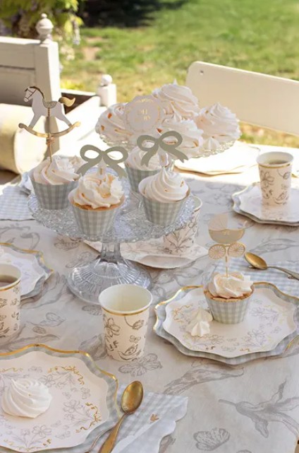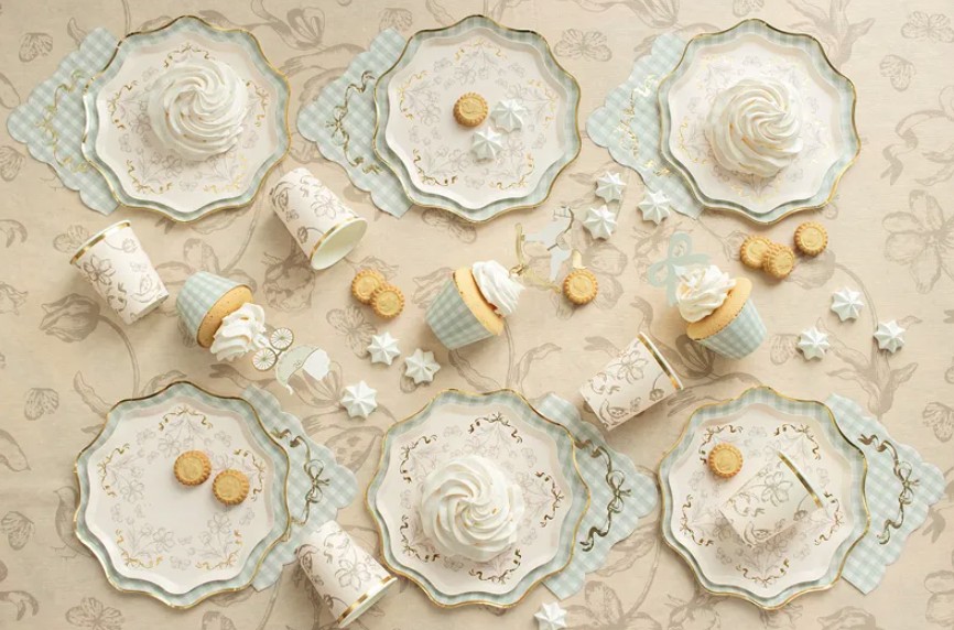 Paberist taldrikud on kaunistatud lillekeste ja lipsukestega.
