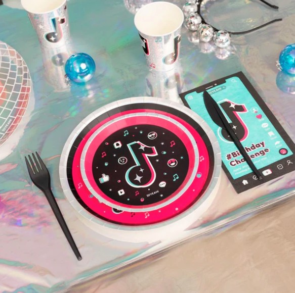 Must taust värviliste aktsentide ja muusikaikoonidega annab taldrikutele erilise ilme, muutes need nii praktiliseks kui ka dekoratiivseks peolaua osaks.