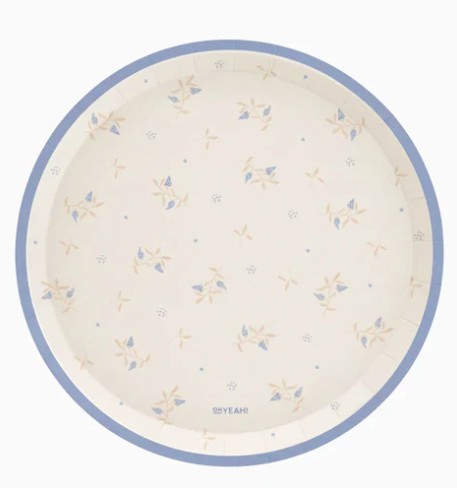 Õrn disain väikeste aasamotiivide ja helesinise äärega loob kerge ning loomuliku ilme, mistõttu sobivad need taldrikud nii hubasteks koosviibimisteks kui ka pidulikumateks sündmusteks.