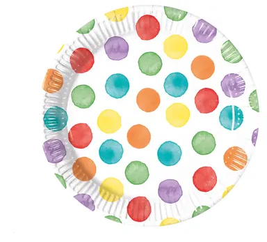 Mängulised taldrikud.Värvilised täpid, mis sobivad ideaalselt laste peole või sõpradega ajaveetmiseks.